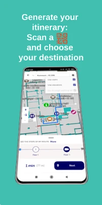 Once your route is calculated, your guide offers you two modes of indoor navigation: assisted or advanced. In assisted mode, your smartphone becomes a dashboard, you regulate your speed and mark breaks. In advanced mode, it becomes an e-compass, and you enjoy step-by-step guidance. BeST Guide processes information in real-time and therefore does not record any data allowing for identification and/or location. In both modes, simply scan one of the many QR codes in the BeST, set your destination, and follow the instructions.