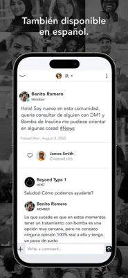 La aplicación de comunidad Beyond Type 1 está respaldada por recursos que se pueden encontrar en BeyondType1.org (y en español en es.BeyondType1.org).