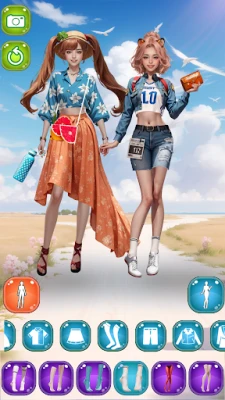 Please dress up two friends. The two of them travel, study, and shop together. Complete your best friend dress-up with dozens of backgrounds and hundreds of outfits. Game Features -High quality photorealistic graphics -Various skin colors and expressions -Hundreds of original costumes -Various and beautiful backgrounds