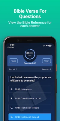 - After you answer the question, it will show you if it is correct or not and show the scripture reference.
