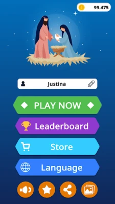 In this main menu section, you can also change the look of the Bible Word Search Puzzles Game under the image button, you can choose the Lenten theme, like the scene of the crucifixion of Jesus, the Christmas season with the image of Mary and the saints, Joseph carrying the Baby Jesus in a manger, or the scene where Joseph took Mary and Jesus to flee to Egypt to avoid King Herod.