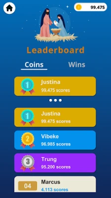 When you click the "Play Now" button, you will be taken to a game screen with the Bible Verse missing words or a question with a short answer. Your task is to fill in the correct words in the blank to complete the Bible Verse. You will receive 30 reward coins, or more when you watch the ad, for each correct answer.