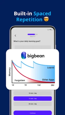 Built on active recall and advanced spaced repetition, BigBean strengthens your long-term memory and accelerates real language retention.