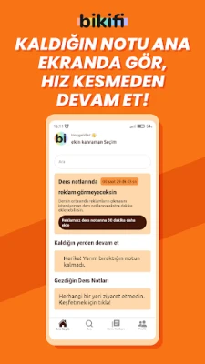 Bikifi, öğrencilerin ders notlarına her an kolay erişim sağlaması ve kaldıkları yerden çalışmaya hızlıca devam etmesi için tasarlanmış ünite takip sistemi temelli bir mobil uygulamadır. Seçtiğiniz üniteye ait ders notları, ek bilgi notları ve karşılaştırma içerikleri tek bir ekranda sunularak etkili ve verimli bir çalışma deneyimi oluşturulur.