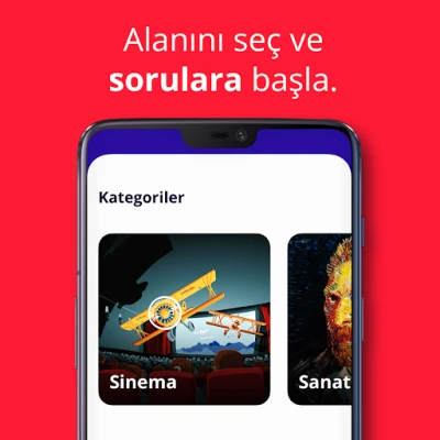 Kültür, sanat, tarih, edebiyat, sinema, müzik, felsefe gibi konu başlıkları ve herkese uygun kategorilerle kendini test edebilmeni, öğrendiğin yeni bilgilerle kendini geliştirmeni sağlıyor.