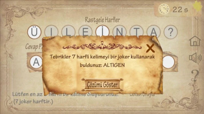 Oyun sonunda en uzun harfli kelimeyi görmek veya sayı oyunundaki çözüme ulaşmak için, çözümü göster butonuna basmanız yeterli.