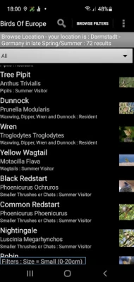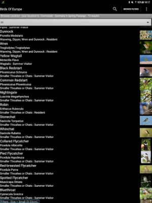 Browse Location option : browse what birds are likely to be found in your area of Europe at the moment.