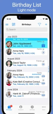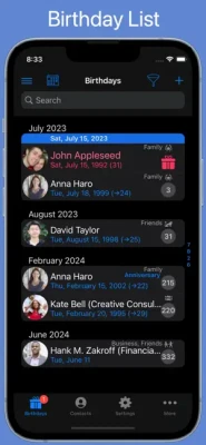 With BirthdaysPro you are always informed about the upcoming birthdays of all your contacts.