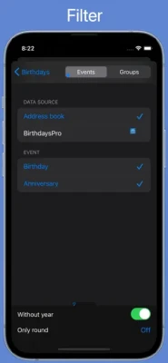 • Sync BirthdaysPro contacts to other devices (iCloud)