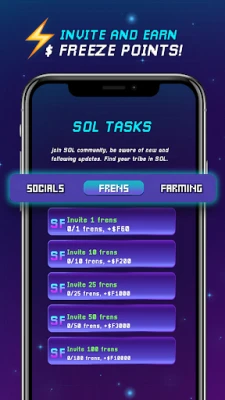 At the end of the season, ALL PLAYERS will get FREEZE coin airdrop which will be listed on various CEX and DEX. The airdrop size will depend on points you have earned for the entire season. Criteria includes game points, tasks completed, friends referred etc.