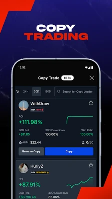 Long or short crypto derivative contracts with up to 100x leverage, and trade spot pairs with instant settlement.
