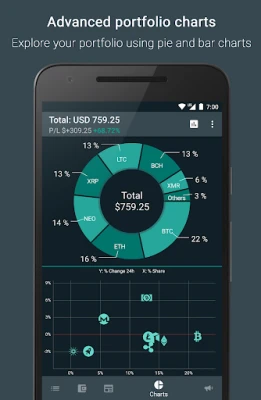 ✔BASIC & FULL PORTFOLIO CHARTS: Get a clear audit of your entire investment portfolio, good-looking charts, always know what's your profits/losses. You can choose between a faster and more basic overview of your crypto portfolio or a more detailed list of coins. You can also see how your portfolio is distributed using advanced pie and bar charts.