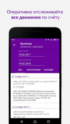 - Получайте актуальные выписки по счетам организации. Выписка за желаемый период отображается непосредственно на экране Вашего мобильного телефона.