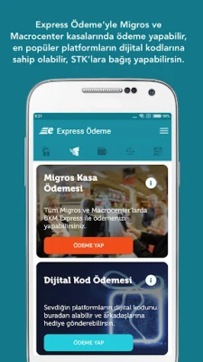 BKM Express hızlı, kolay ve güvenli bir ödeme sistemidir. BKM Express’in mobil uygulaması ile kart bilginizi işyeri ile paylaşmadan hızlı alışveriş yapabilir ve 7/24 para gönderebilir, para isteyebilirsiniz.