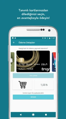 Üye olduktan sonra uygulamanın ana sayfasında bulunan "Kart Ekle" görseline tıklayarak kartlarınızı tanımlayabilirsiniz. Bilgilerinizi tanımladıktan sonra bankanızdan gönderilen şifreyle doğrulamanızı gerçekleştirerek işlem yapmaya başlayabilirsiniz.