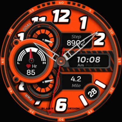 Feature : - Analog Time - Digital Time - Day in month - Heart Rate - Step counter - Distance (mile)