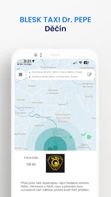 Stáhněte si aplikaci BLESK TAXI Dr.PEPE a užijte si jednoduché, rychlé a bezpečné objednání taxi v Děčíně a okolí. Naše taxi služba má mnoho let zkušeností a garantujeme spolehlivost a profesionální přístup.