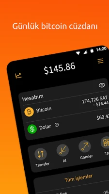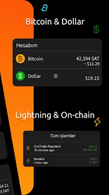 Günlük Bitcoin işlemleri için Bitcoin hesabınızı, değeri sabit tutmak içinse USD’ye endeksli Stablesats destekli Dolar hesabınızı kullanabilirsiniz.