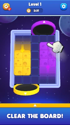 - Once all the obstacles are cleared, the blocks will be sucked into the gravity black hole with a special gravitational force.