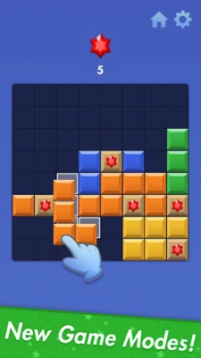 Drag and drop blocks onto the board. Create horizontal and vertical lines to destroy blocks. Place the blocks wisely, and become a Block Star!