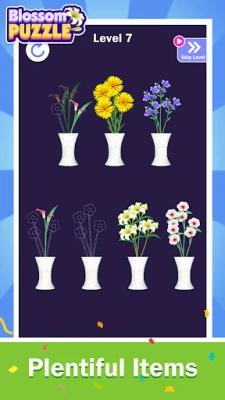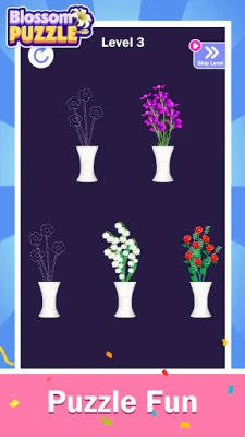 Blossom Puzzle is a fun and addictive sorting puzzle game with many beautiful flowers! Try to sort the same variety of flowers in the vase until all flowers in the same vase. A challenging yet relaxing game to exercise your brain!