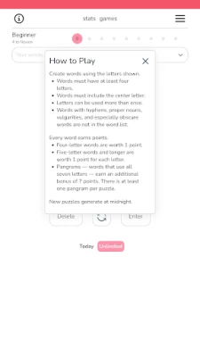 - Words must follow the rules: no hyphens, no proper nouns, no vulgarities, and no obscure words.