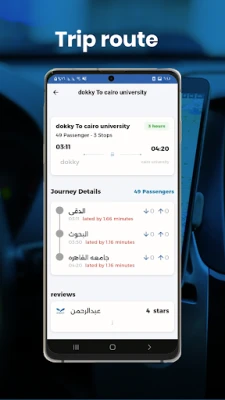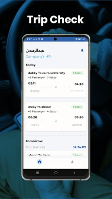 كموظف ستتمكن من مشاهدة تفاصيل الرحلة الموجودة في اي يوم مثل محطات النزول و مكان البداية و النهاية و موعد وصول السائق لكل محطة توقف و مشاهدة تقييم السائق و ستتمكن من مشاهدة قائمة تاريخ الرحلات سواء نشطة او مكتملة و يوجد ايضا مسئوول الموارد البشرية يقوم بمشاهدة الرحلات الحالية