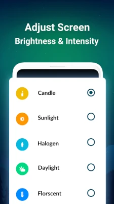 The Night Mode Blue Light Filter provides 8 blue light filters - Candle, Sunlight, Halogen, Daylight, Fluorescent, Incandescent, Dim and Ember. You can use one of 8 blue light filters to activate night mode or dark mode and warmlight for eye care against natural blue light rays. Relieve eye strain, macular degeneration, glaucoma and cataract with blue light night filter during sleepless night reading.