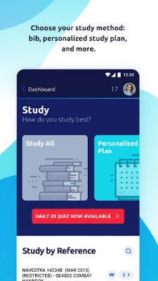 With Bluejacketeer your progress is saved as you study, allowing you to study in short bursts when you have a few extra minutes.