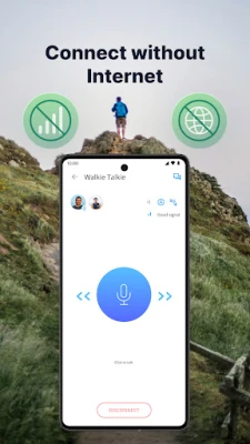Cihazınızı çok yönlü bir telsize dönüştüren Android uygulamamızla iletişiminizi geliştirin. İnternet bağlantısına ihtiyaç duymadan, Bluetooth veya Wi-Fi üzerinden sesli ve yazılı sohbetin keyfini çıkarın. Uygulama, zahmetsiz bağlantılar için otomatik Bluetooth eşleştirme özelliğine sahiptir. İki tür seçenekle görüşmelere katılın: hızlı mesajlar için bas ve basılı tut (PTT) veya uzun tartışmalar için tıkla-konuş. Çeşitli iletişim ihtiyaçları için mükemmel olan bu kullanıcı dostu telsiz uygulamasıyla zahmetsizce bağlantıda kalın. Çevrimdışı ses bağlantısının basitliğini yaşayın. Hemen indirin ve istediğiniz zaman, istediğiniz yerde bağlantıda kalın!