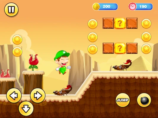 Ormanlardan çöllere, buzlu dağlardan gizemli mağaralara kadar uzanan macerada Bob'a yardım edin; paraları toplayın, engellerden sıyrılın ve eğlenceli düşmanları alt edin. Hem deneyimli platform oyuncuları hem de yeni başlayanlar için saatlerce sürecek aksiyon ve retro tarzı eğlence garanti!