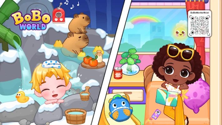 BoBo World: Tatilde keşfedebileceğiniz sahneler arasında sıcak su kaynağı kabin, kayak merkezi, seyahat treni, tropikal plaj, denizin altındaki Atlantis, harikalar diyarı ve Dünya Köyü bulunmaktadır. Her sahne renkli ve heyecan verici bir deneyim sunar! Her sahnede keşfetmeniz için gizli paralar ve hazineler sizi bekliyor. Yeni eşyaların kilidini açmak için belirli yerlerde seyahat paralarını bulun ve toplayın, tatilinize daha fazla eğlence katın!