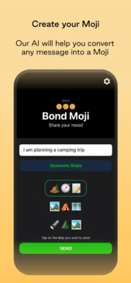 Bond Moji - the Bond Touch app that lets you communicate your feelings and connections through a delightful collection of emojis! Express your emotions effortlessly with our cutting-edge app! No more typing out lengthy texts to explain how you’re feeling.Whether you’re feeling happy, sad or excited, our three expressive emojis make sharing your mood a breeze. Connect with friends and family in a whole new way - no words needed! Let your emotions do the talking and brighten someone’s day with just a Moji!! Download now and bring your feelings to life!