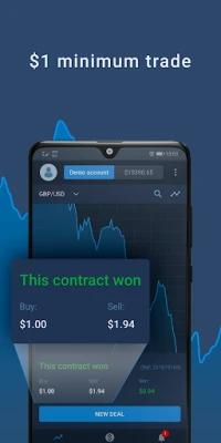 Our intuitive 2 button system makes it super simple to trade – no learning required. If you think the price will go up, tap the big Green button to enter a trade at just the right price point – the trade will close out automatically. Likewise, tap the big Red button if you think the price will go down.
