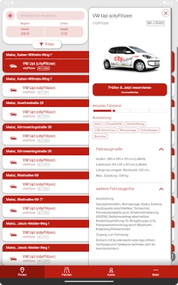 Mit der book-n-drive Carsharing App findest Du jederzeit das passende Auto in Deiner Nähe. Die App zeigt alle book-n-drive Autos und cityFlitzer. Die wichtigsten Funktionen auf einen Blick: