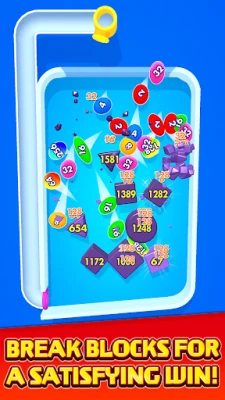 Drag your finger to aim, release to shoot. Destroy the obstacles at the bottom of the screen; if they reach the top, it's game over. And of course, if balls with same number touch, they'll merge and become more powerful.