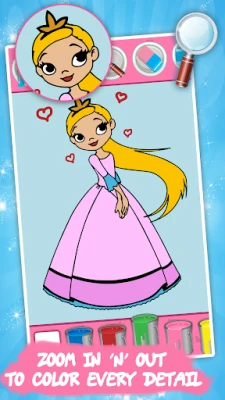 - Kızlar için prenses boyama ve karalamalar bebekler için de tasarlanmıştır.