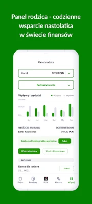 👍 Rodzic w ramach swojej bankowości zyskuje kontrolę nad wydatkami i transakcjami dziecka.