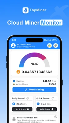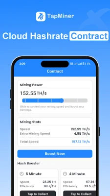 BTC Cloud Mining: TapMiner brings you a smart, hassle-free way to mine BTC without draining your phone’s battery. Our platform rents powerful cloud-based computing resources so you can earn passive income effortlessly. One tap is all it takes to start mining 24/7, with automated tracking and secure withdrawals right at your fingertips.