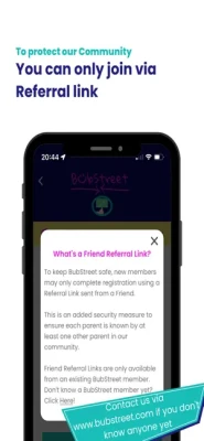 Referral link is required to join the BubStreet Community and becoming a member of our App. We do this to protect the integrity of our App and to maintain a safe community for our fellow Parents to connect with to help find friends for their children. We ask that every member of the app only invite friends that they have personally met and feel would be a great addition to our Community.