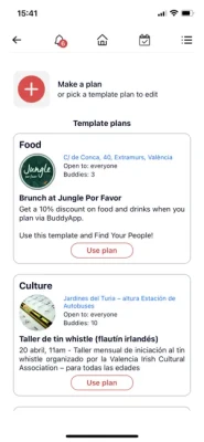 - Ver y unirte a los planes de otras personas cerca de ti, ya sean tus amigos o gente nueva.
