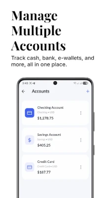 • 💳 Multiple Accounts – Manage unlimited wallets, bank accounts, and e-wallets in one place.