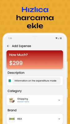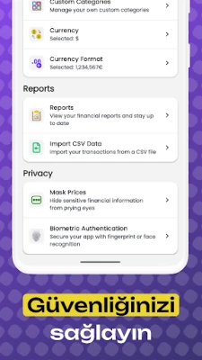 Elektrik, su, internet, kredi kartı ve diğer tüm faturalarınızı takip edin. Ödeme tarihlerinden önce hatırlatmalar alın ve gecikme risklerini azaltın. Bu özellik sayesinde bütçe yönetimi ve harcama yöneticisi süreçlerinizi daha güvenli ve planlı hale getirebilirsiniz. Harcama takip ile tüm harcamalarınızı tek bir noktadan kontrol altında tutabilirsiniz.