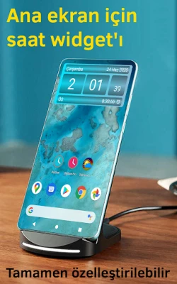 Ana ekranda Büyük Dijital Saat Pro widget'ını kullanmak mümkündür.