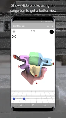 This is Matinmat.com app to help customers figuring out how to assemble all the pieces present in their projects made of sheets of foam. The original model has been split into a collection of numbered blocks, a 3D view of the blocks is the standard view. Each block appears of a different color and numbers appear over each block. The user can later press on one of the blocks to get the detail of the pieces that need to be stacked to create that particular block. The block-building view is just 2D.