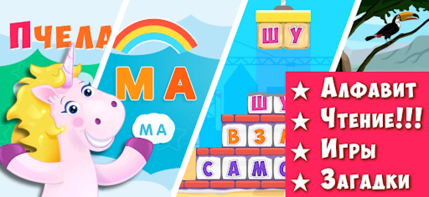 В данное приложение включен уникальный инструмент, помогающий учить детей читать - "Буковки: Мастерская слов". Это универсальный инструмент для составления любых слов с помощью удобной озвученной клавиатуры. Слова автоматически разбиваются на “*склады”. Ребенок увидит слово целиком, составляющие его склады, прослушает звучание букв и складов в слове. А наш персонаж единорог Лучик подскажет малышу как читаются склады один за другим! Это интерактивная букварь и азбука для детей в одном удобном исполнении - учите алфавит, читайте слоги, слова и целые предложения! Для девочек и для мальчиков, для малышей Ваших!