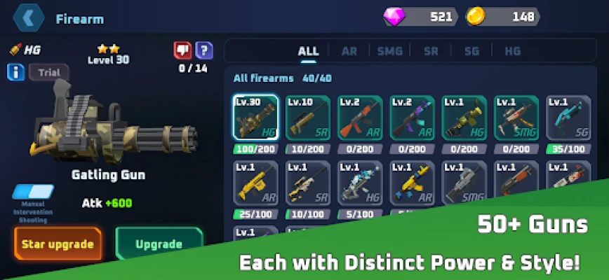 · Vast Arsenal of Weapons: Choose from over 50 unique firearms, each with distinct designs and abilities. From precision rifles to explosive shotguns, every weapon is a game-changer!
