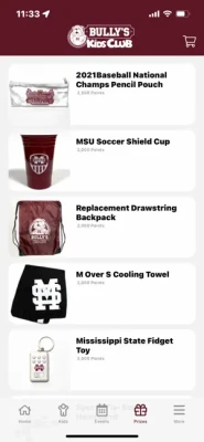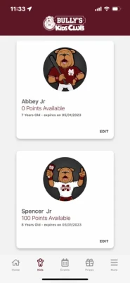 With the Bully's Kids Club app you can: - Log into your parent account and view your children's kids club details - See upcoming events that you can attend for points - Check in one or more children to events to earn points - See each child's point total and browse the prize store - Explore all the ways your children can earn points - Reset your rewards account password