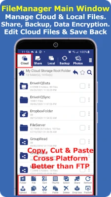 DriveHQ FileManager hem yerel hem de bulut dosyalarını yönetebilir. Yerel ve bulut arasında kolayca farklı klasörlere gidebilir, dosya/klasör yükleyebilir veya indirebilirsiniz. Kopyala, Kes, Yapıştır, Sil, Görüntüle ve Düzenle gibi normal özelliklerin yanı sıra fotoğrafları, videoları, dosyaları ve klasörleri buluta yedekleme ve ayrıntılı erişim kontrolüyle dosyaları paylaşma gibi gelişmiş özellikleri destekler.