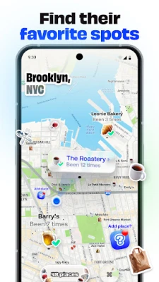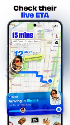 Bump'ta favori kişilerinizi ve yerlerinizi doğru, gerçek zamanlı ve pil dostu konum paylaşımıyla içeren kişisel bir harita oluşturun.